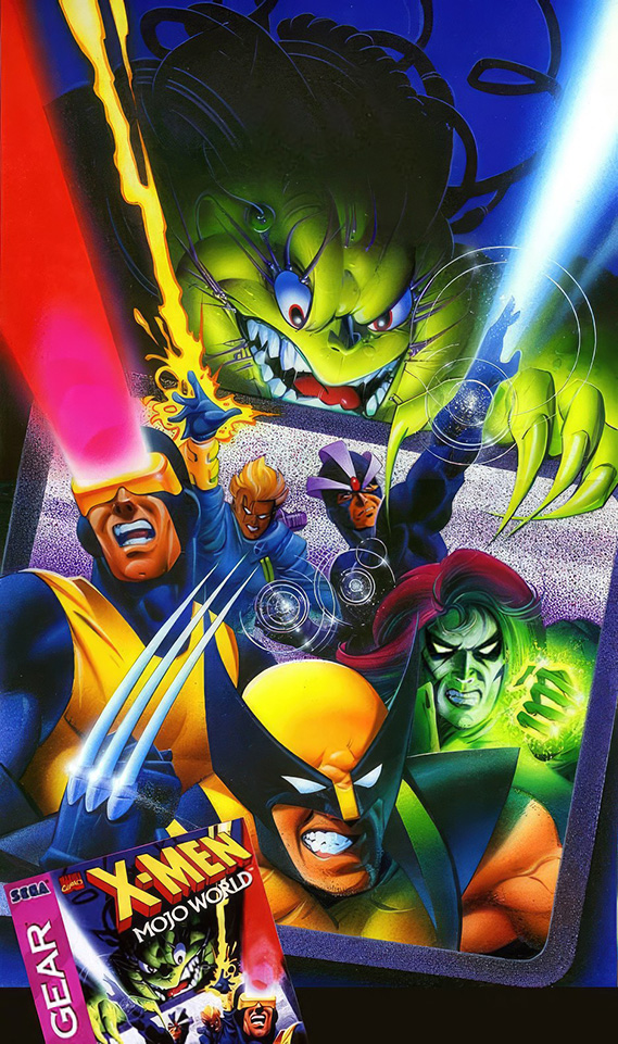 В прошлом мы выкладывали работы Кена Стиси (Ken Steacy), которые он нарисовал для ретро-игр о Людях Икс (X-Men). Среди этих работ была и ранняя обложка X-Men: Mojo World для SEGA Game Gear и SEGA Master System, отличающаяся от финальной версии. Заметить разницу в композиции постера можно сразу, но что однозначно больше всего бросается в глаза, так это один персонаж, которого нет ни на финальной обложке, ни в самой игре.